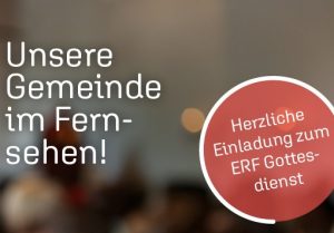Herzliche Einladung zum Fernsehgottesdienst vom ERF in unserer Gemeinde. Aufzeichnung: So. 22.03.26 10.30 Uhr Ausstrahlung So. 29.03.26 Bibel TV 7.45Uhr / 11.30Uhr Radio 10Uhr ERF Plus Digitalradio 14Uhr / 22Uhr ERF Mediathek online abzurufen