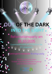 Wann: 31.10.25, offener Anfang ab 17.45Uhr, gemeinsamer Impuls 18.30Uhr anschl. offene PartyWo: Gemeindehaus, EG Langenbach, Marienberger Str. 6 Wir möchten den Reformationstag dieses Jahr auf ganz neue Weise feiern.Seit vielen...